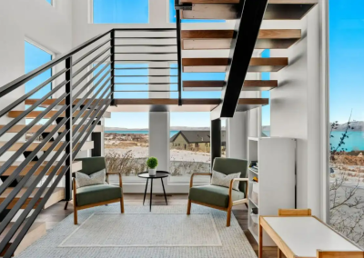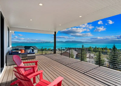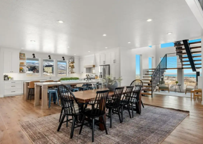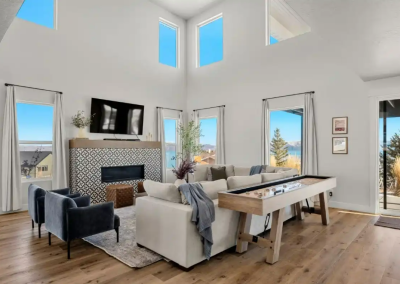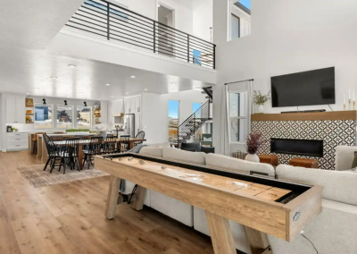 Raspberry Retreat is a perfect escape for families and large groups. This beautiful home in the Bear Lake Valley of Utah is designed with both relaxation and entertainment in mind. Enjoy stunning views of the lake from your private hot tub. With six bedrooms and five bathrooms, there is plenty of space for everyone to unwind and enjoy. The boat garage is more than just storage—it’s also home to a pickleball court and basketball hoop.