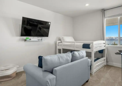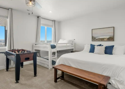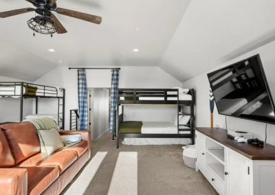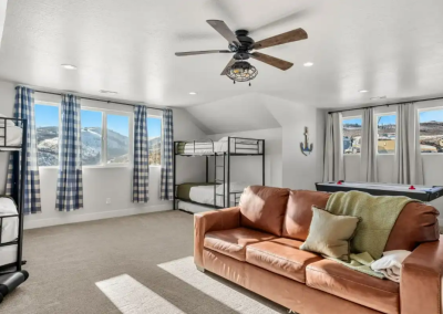 Raspberry Retreat is perfect for large families or groups, with spacious accommodations featuring six bedrooms and five bathrooms. You can enjoy plenty of room to relax, plus amenities like a private hot tub, pickleball court, and easy access to Bear Lake’s outdoor activities can make for an unforgettable vacation experience.