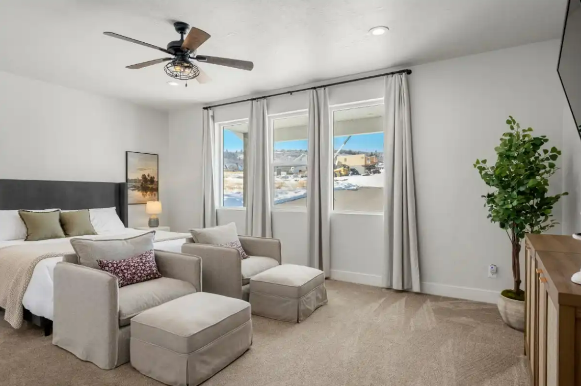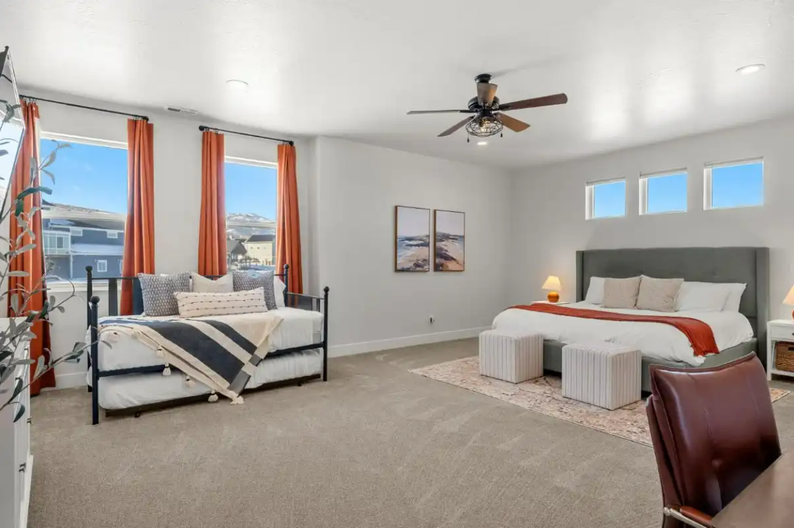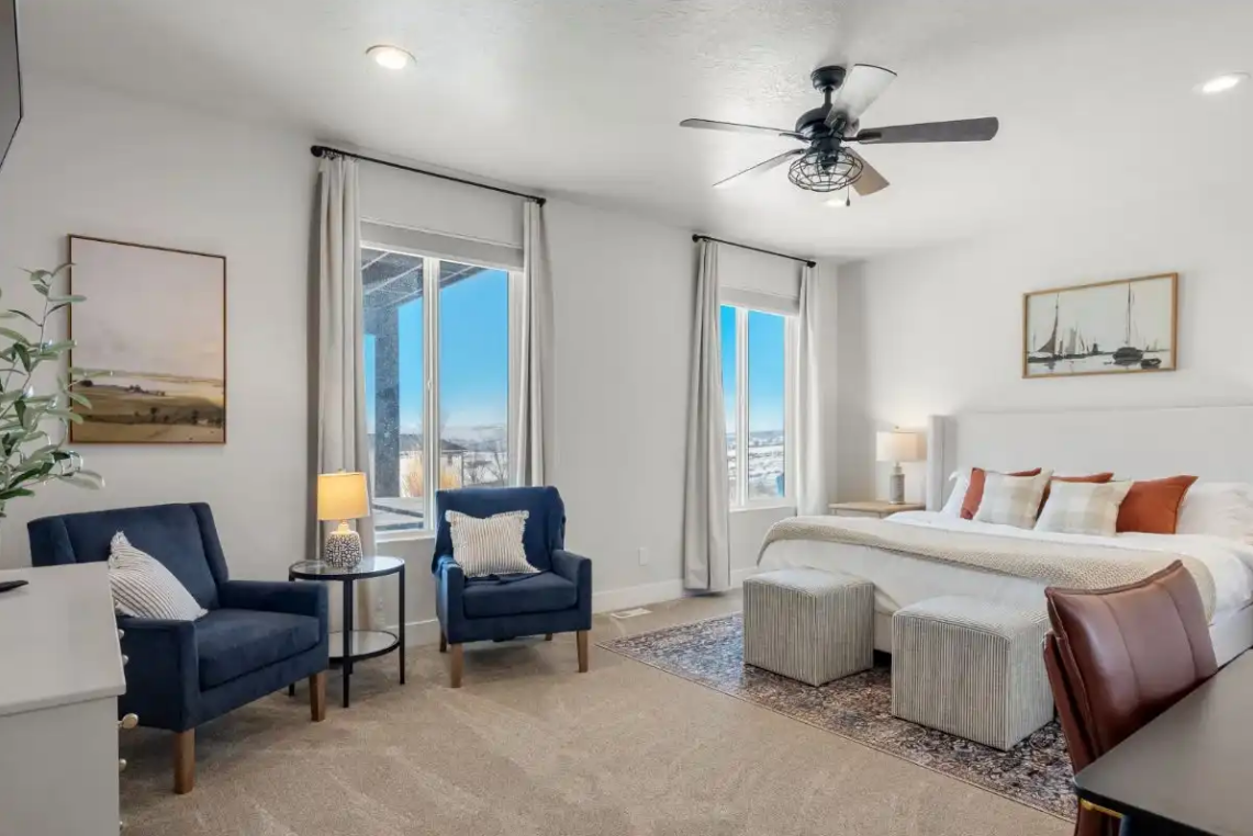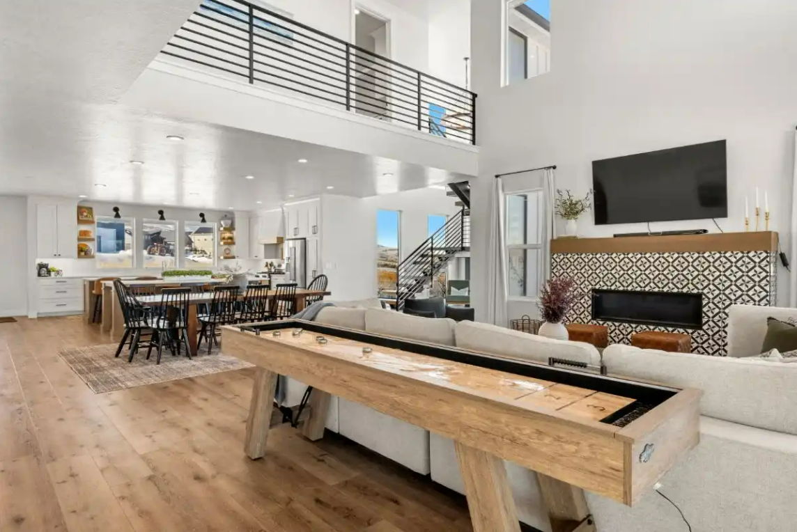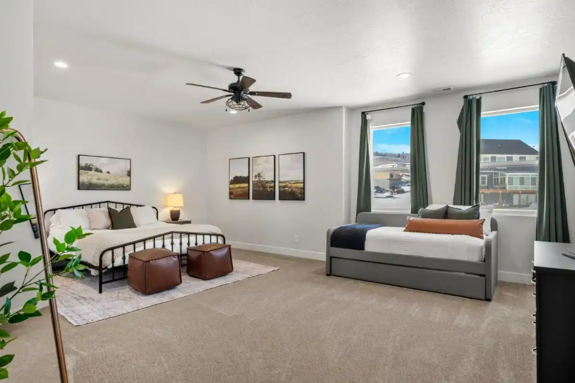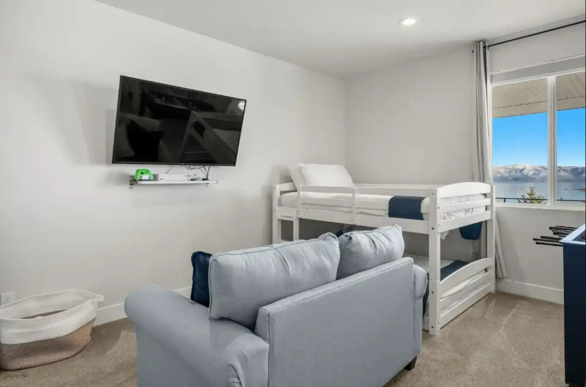 Raspberry Retreat is perfect for large families or groups, with spacious accommodations featuring six bedrooms and five bathrooms. You can enjoy plenty of room to relax, plus amenities like a private hot tub, pickleball court, and easy access to Bear Lake’s outdoor activities can make for an unforgettable vacation experience.