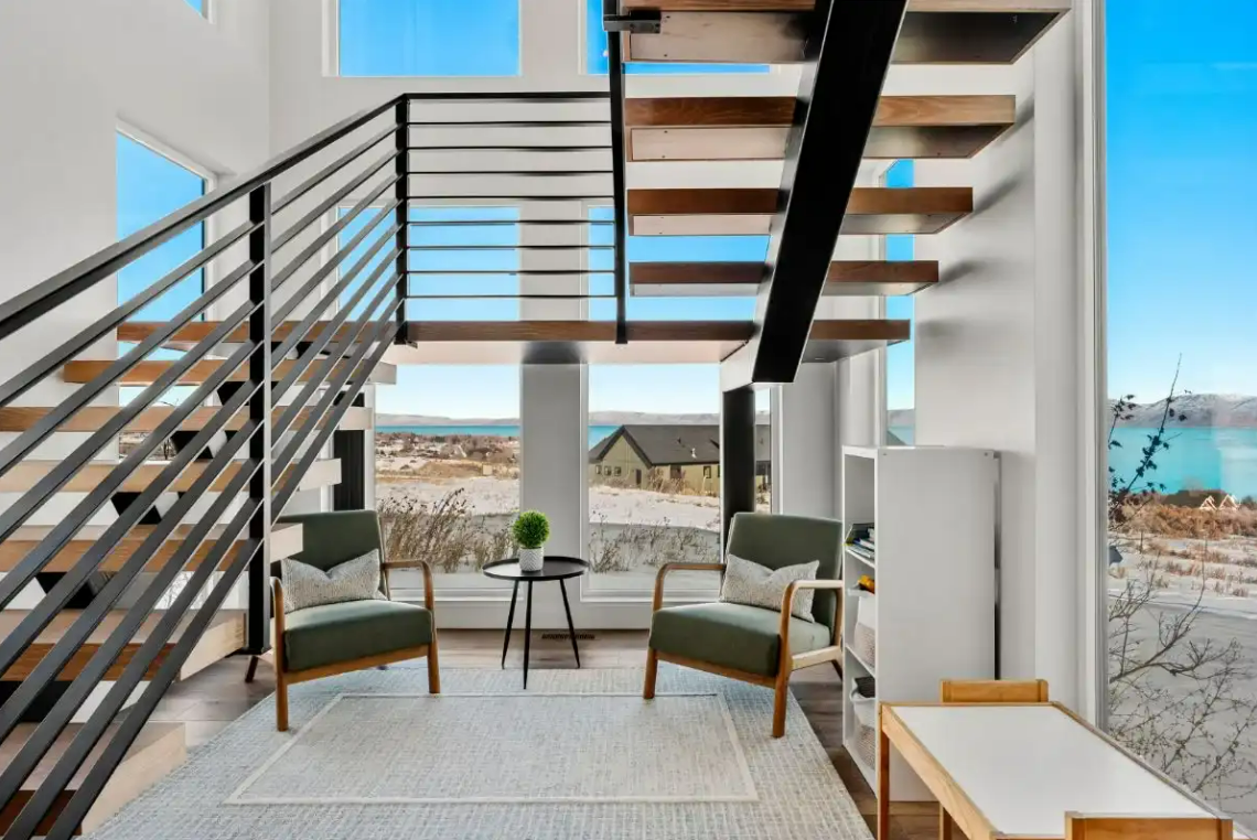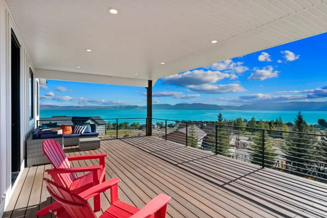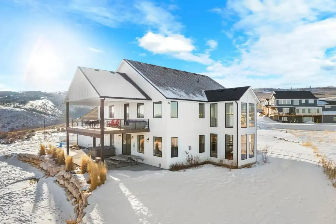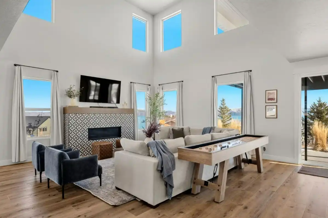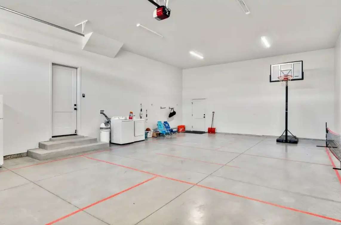 Raspberry Retreat is a perfect escape for families and large groups. This beautiful home in the Bear Lake Valley of Utah is designed with both relaxation and entertainment in mind. Enjoy stunning views of the lake from your private hot tub. With six bedrooms and five bathrooms, there is plenty of space for everyone to unwind and enjoy. The boat garage is more than just storage—it’s also home to a pickleball court and basketball hoop.