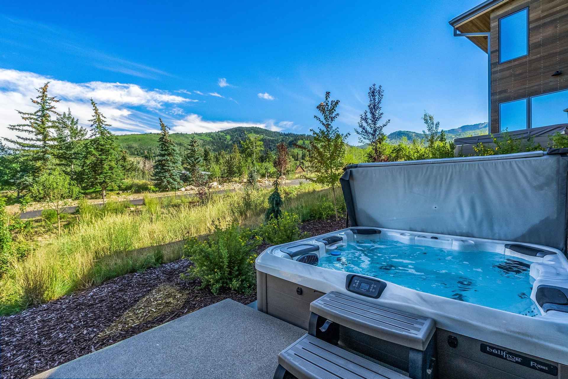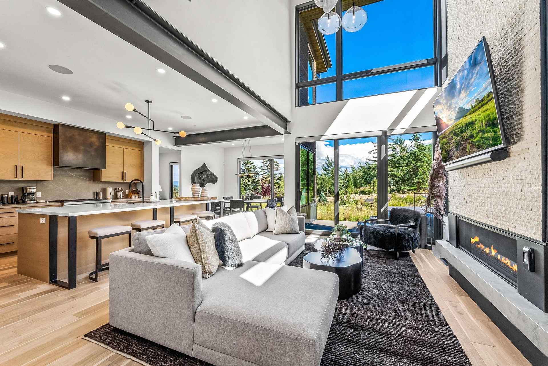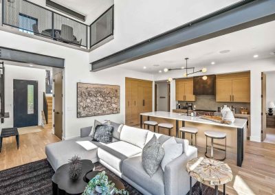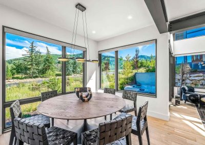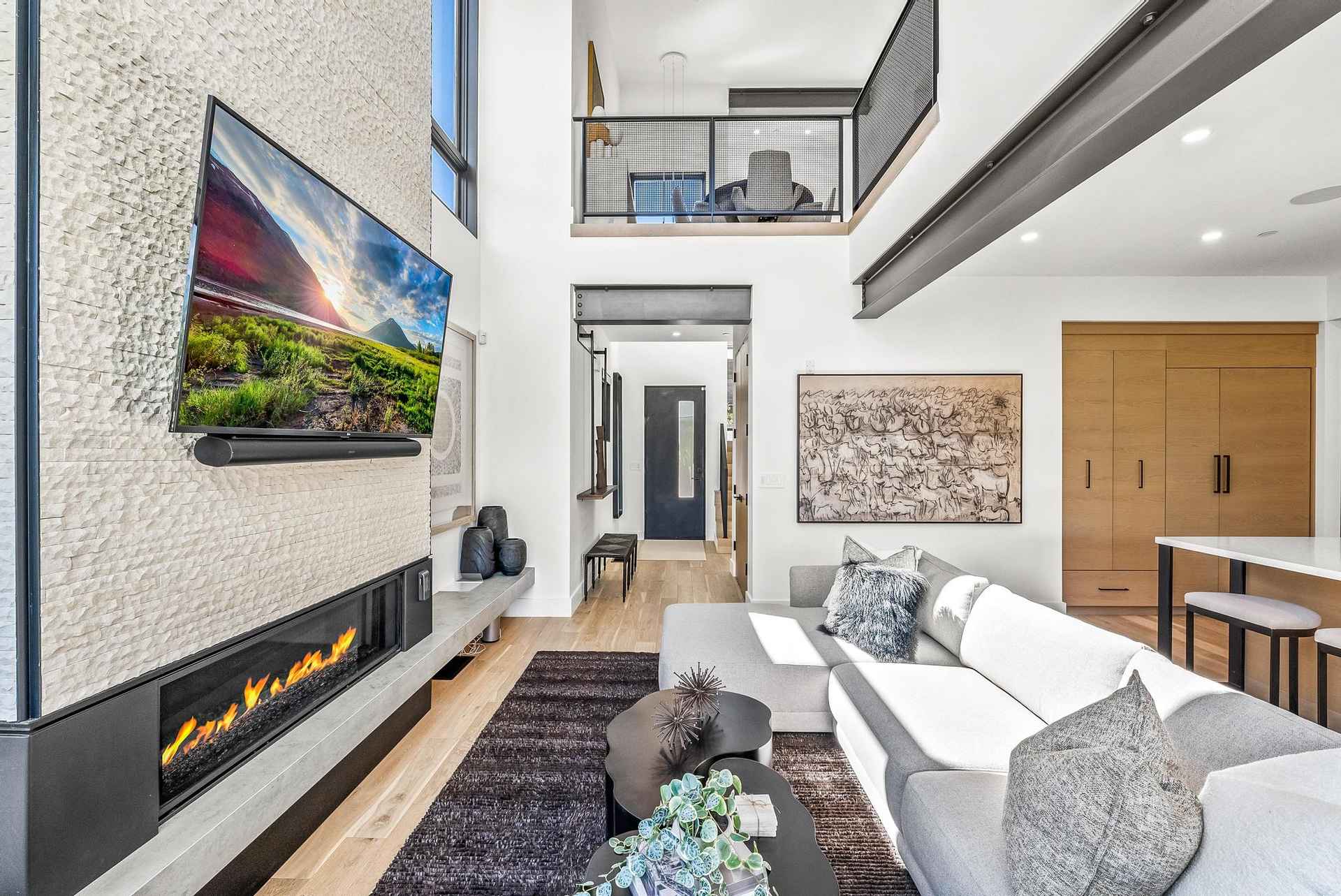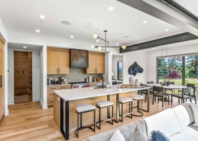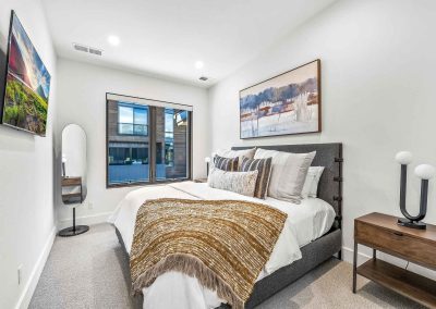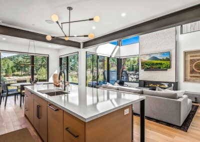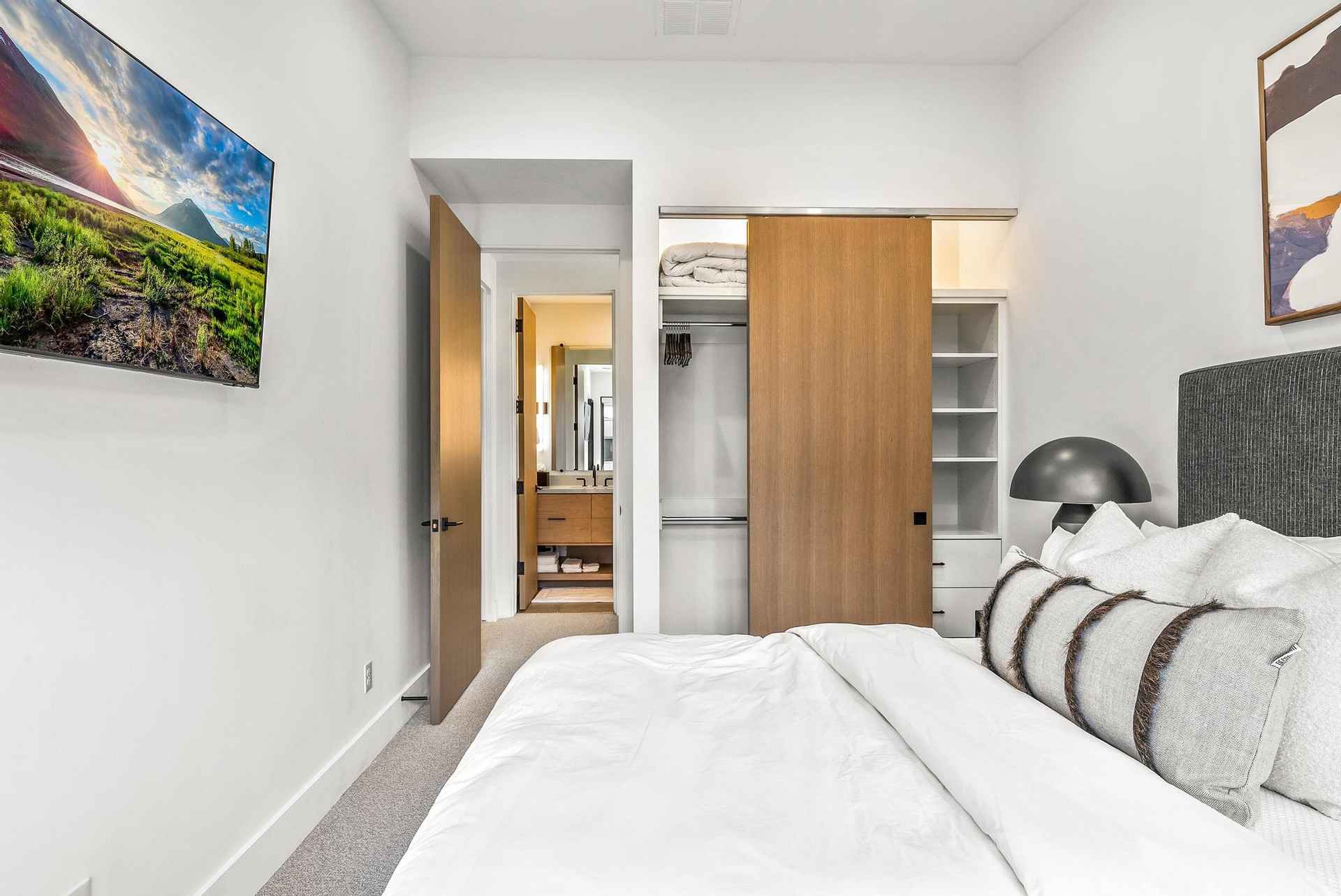 Enjoy unobstructed views of Iron Mountain from Red Pine, a spacious new construction townhouse with an open plan design. The home’s modern vibe starts with a double-height fireplace and a window wall that opens to the patio and hot tub. The gourmet kitchen features stainless steel appliances and a large island with seating. The adjoining dining area is washed in sunlight and mountain views. A bedroom, bathroom and ski storage area round out the main floor.
