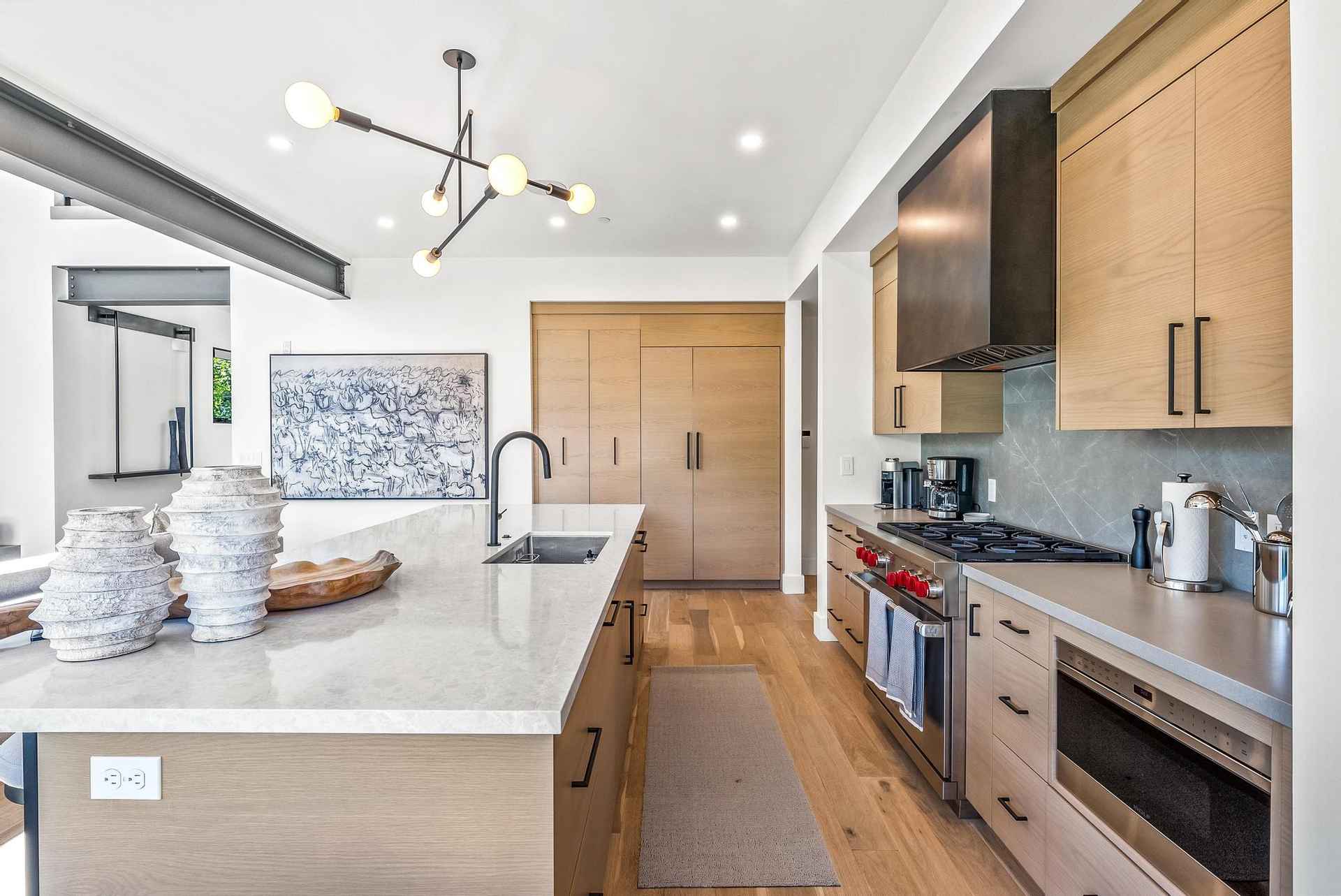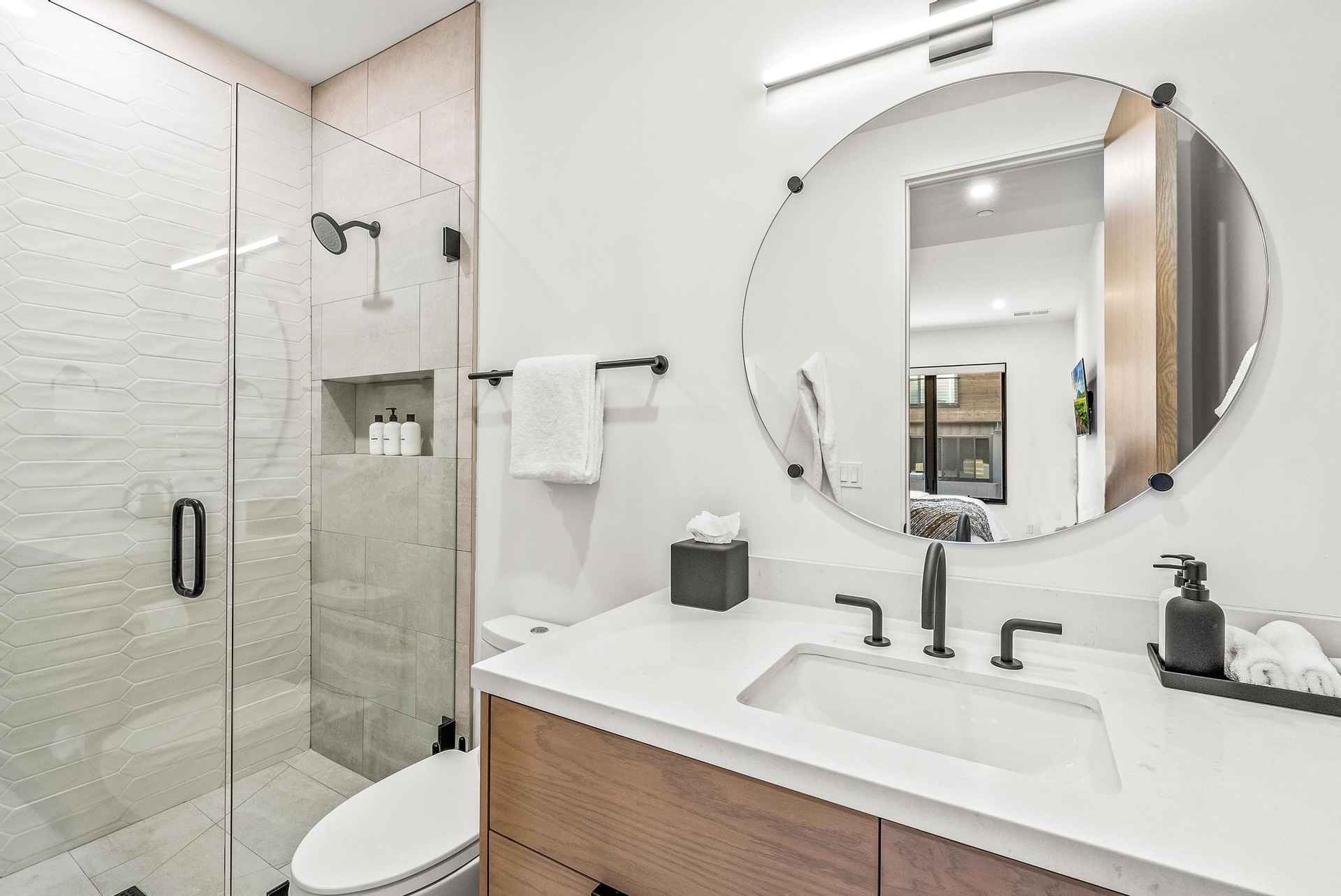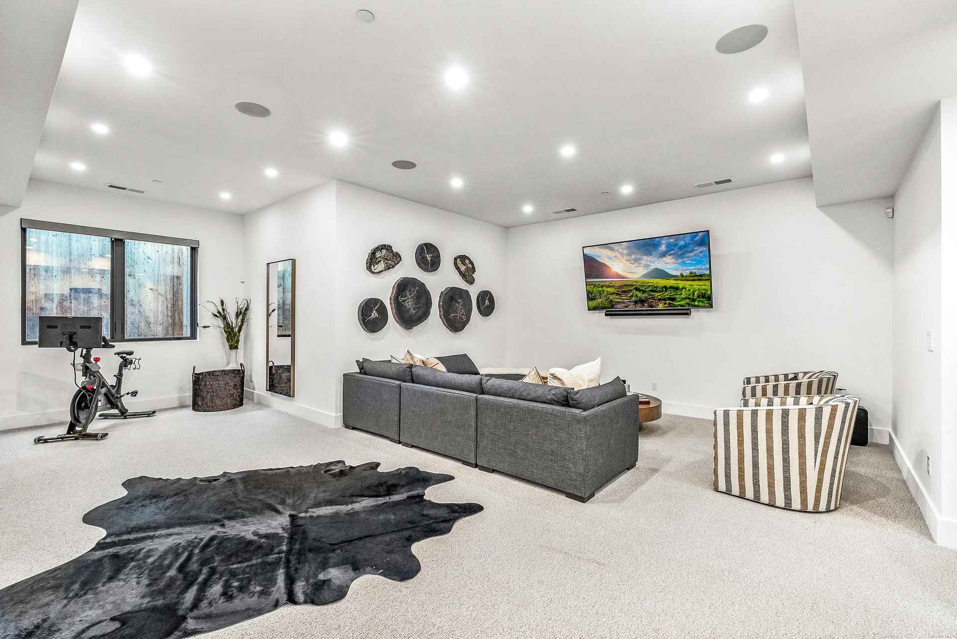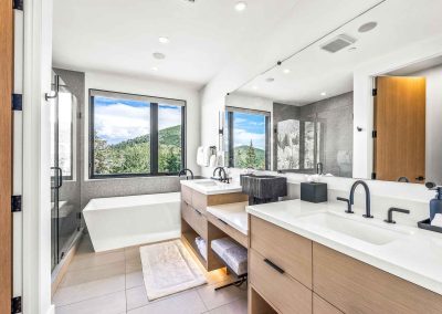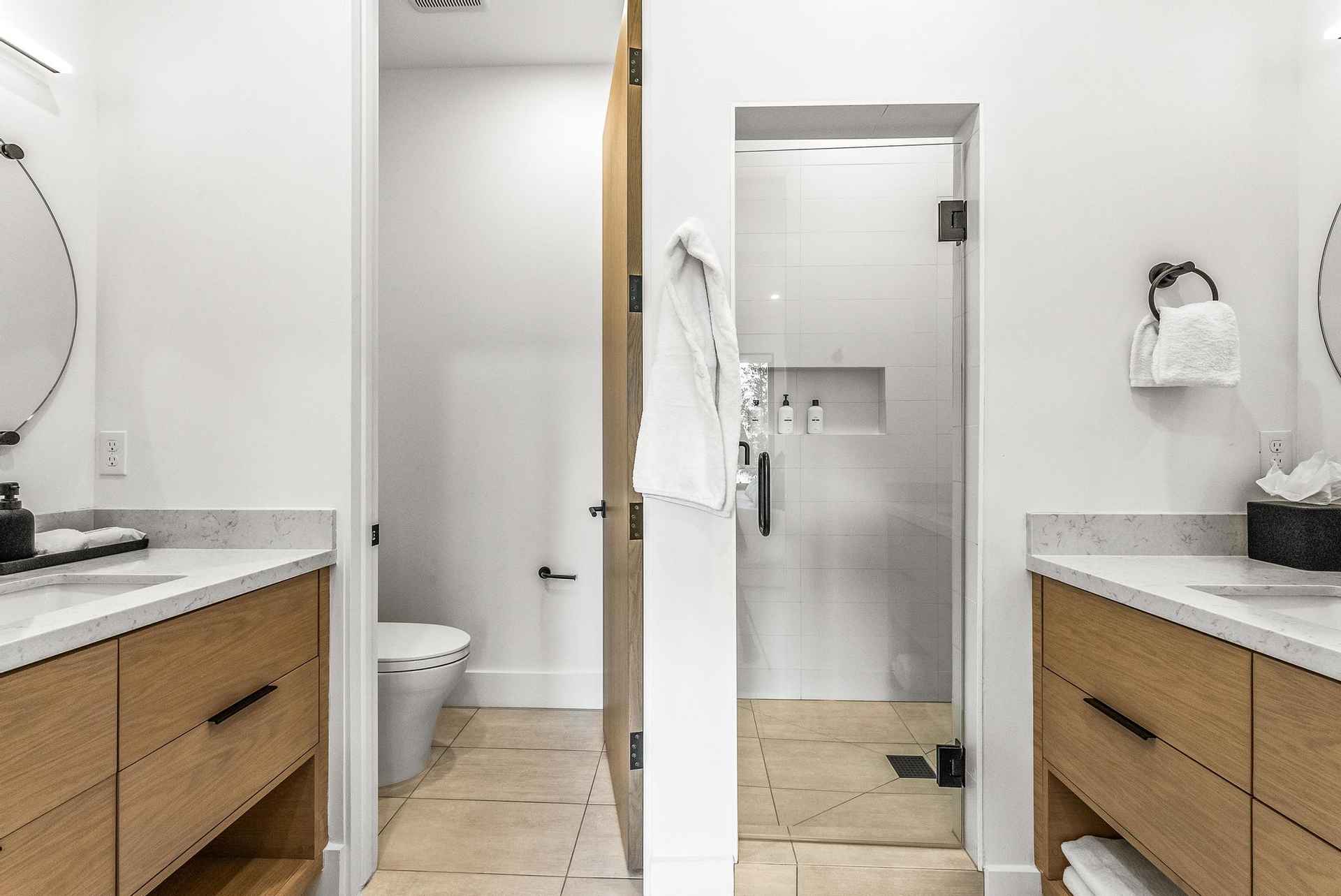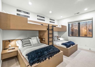 Two guest rooms and a luxurious primary suite are upstairs, just past a cozy loft office space. The suite includes a fireplace, walk-in closet and an en suite bathroom with soaking tub, dual vanities and a tile shower. The lower level has a large media room with wet bar and a modern four-bed bunk room. The home, near Park City Mountain slopes, is close to golf and bike trails, plus the shops and restaurants of Canyons Village. The home comes fully furnished and professionally decorated.