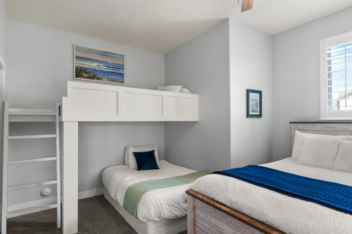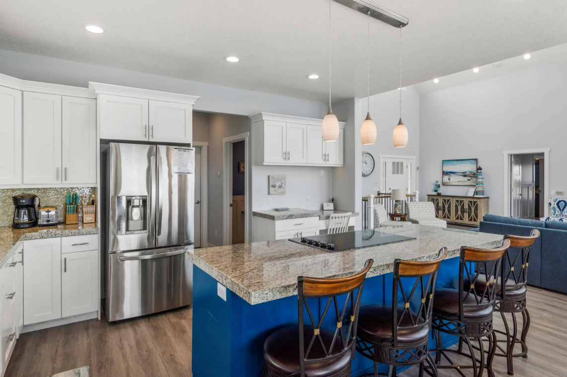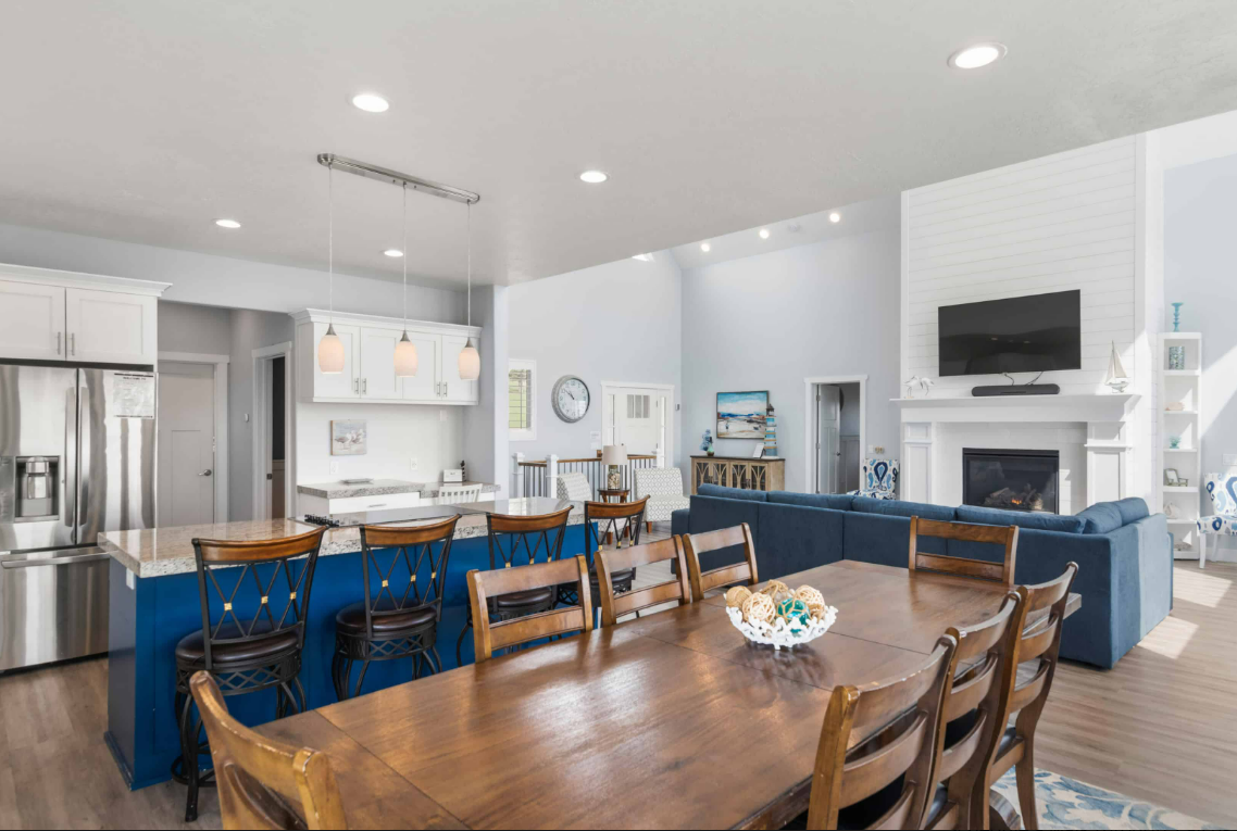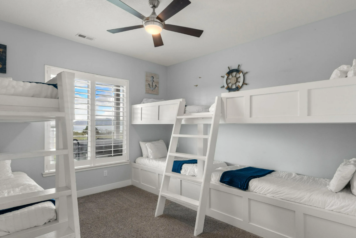 Bear Lake Bluffs can comfortably accommodate a large group. With five bedrooms, four bathrooms, and a total 3,500 sq. ft., it is ideal for families or groups of up to 12-14 people.