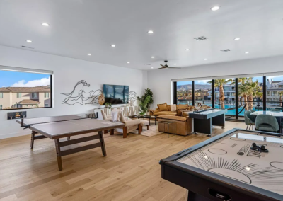 Modern Lagoon is fully equipped with everything you need for an unforgettable vacation. Whether you’re paddling on the lagoon with provided paddle boards and kayaks or enjoying beach volleyball and spike ball in the sand, there’s something for everyone to enjoy. Indoors, an arcade, ping pong table, air hockey, shuffleboard, and home theater await, guaranteeing entertainment for guests of all ages. Plus, a plethora of board games ensures fun for the whole family.