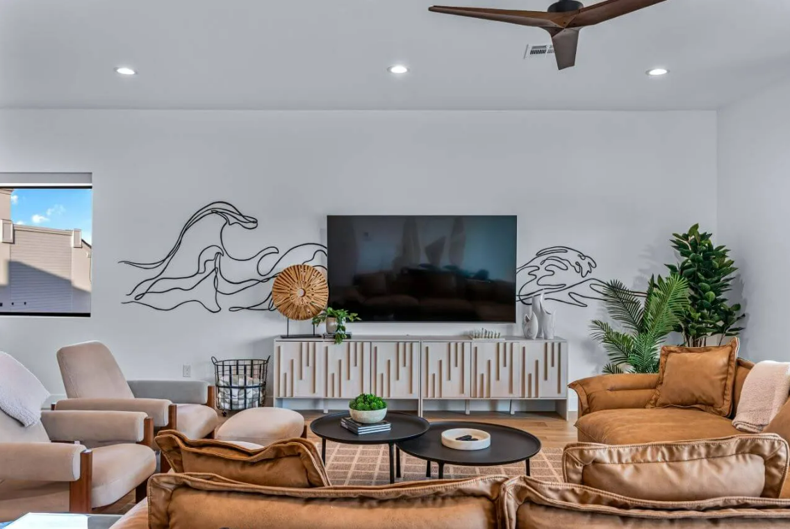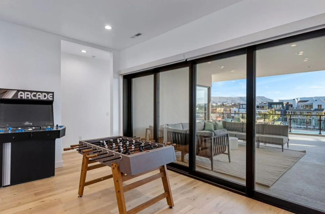 Modern Lagoon is fully equipped with everything you need for an unforgettable vacation. Whether you’re paddling on the lagoon with provided paddle boards and kayaks or enjoying beach volleyball and spike ball in the sand, there’s something for everyone to enjoy. Indoors, an arcade, ping pong table, air hockey, shuffleboard, and home theater await, guaranteeing entertainment for guests of all ages. Plus, a plethora of board games ensures fun for the whole family.