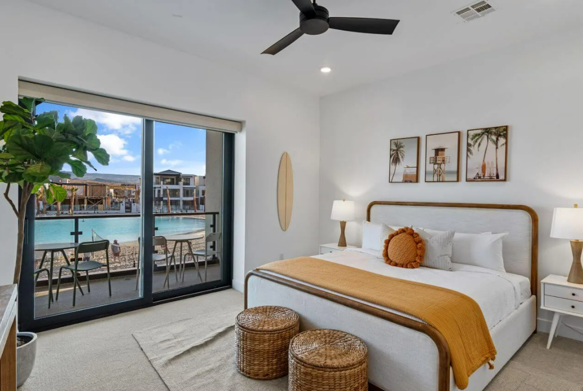 Modern Lagoon stands beach-front on the stunning Lagoon at Desert Color. Step out your front gate to join the excitement, or savor the festivities from your private pool and spa. Blue waters and sandy beaches spanning over 2.5 acres, The Lagoon is a paradise for swimming, kayaking, paddle boarding, and more! Immerse yourself in luxury, entertainment, and endless opportunities for fun in the heart of St. George’s most vibrant community at Modern Lagoon.