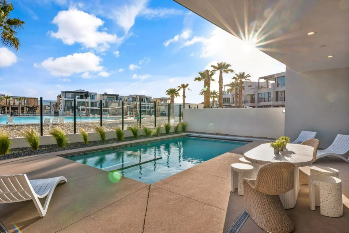 With accommodations for over 28 guests and a spacious 6,261 square feet of living space, Modern Lagoon is the perfect destination for gatherings with family and friends. Simply pack your suitcase and head to your favorite place with your favorite people – paradise awaits in Desert Color. Don’t miss out on the opportunity to make this stunning beachfront property your own and experience coastal living at its finest with Fraxioned.