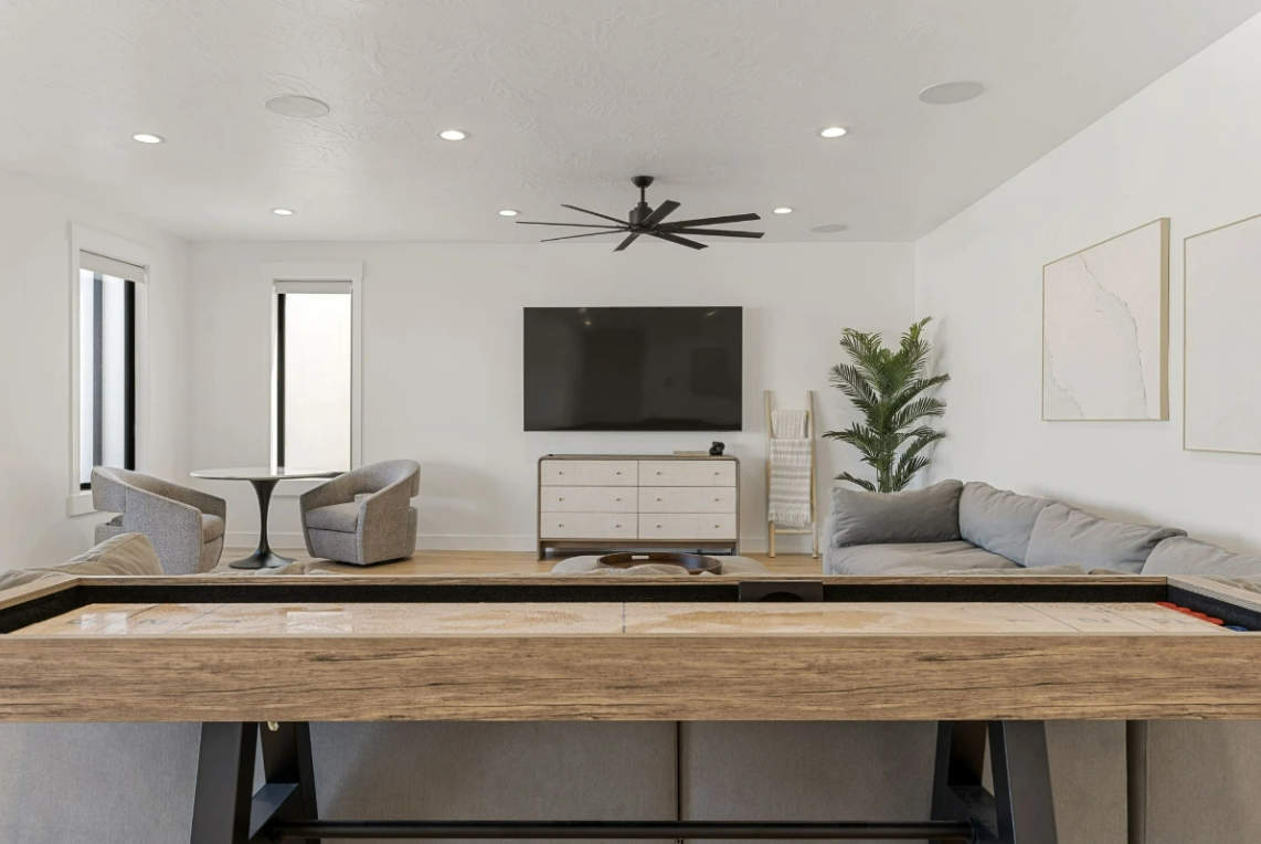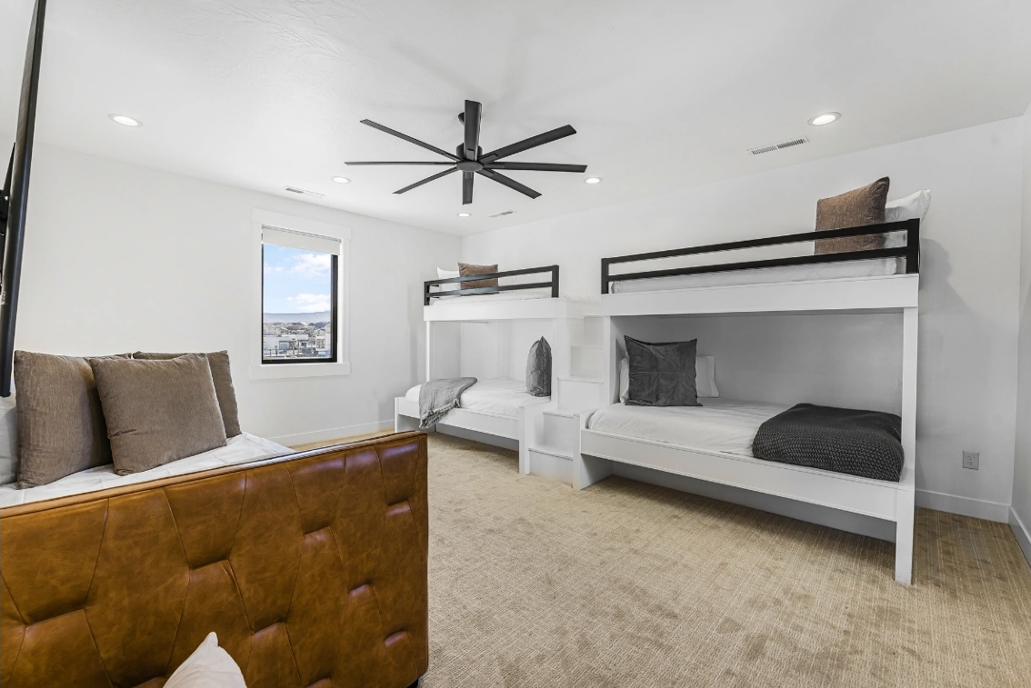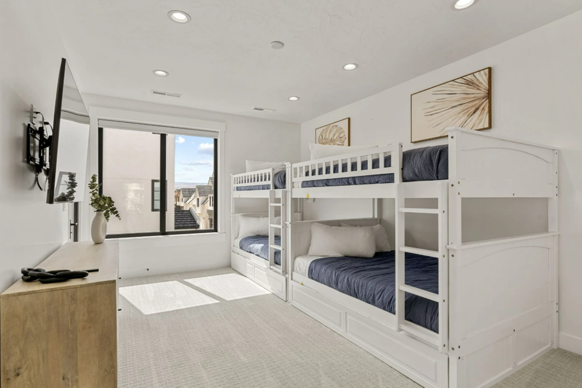 The Palm is one of the last remaining opportunities to own a beachfront home on the stunning Desert Color Lagoon in St. George, Utah. This beautifully designed home offers the perfect blend of luxury, comfort, and entertainment, making it an ideal retreat for families and friends. With 1/13 co-ownership, owners enjoy 28+ nights per year in a fully furnished, thoughtfully appointed space that accommodates 28+ guests. From spacious bunk rooms to open-concept living areas, every detail is designed to maximize relaxation and enjoyment.