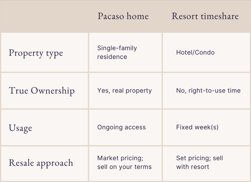 THE DIFFERENCE BETWEEN TIMESHARE & PACASO