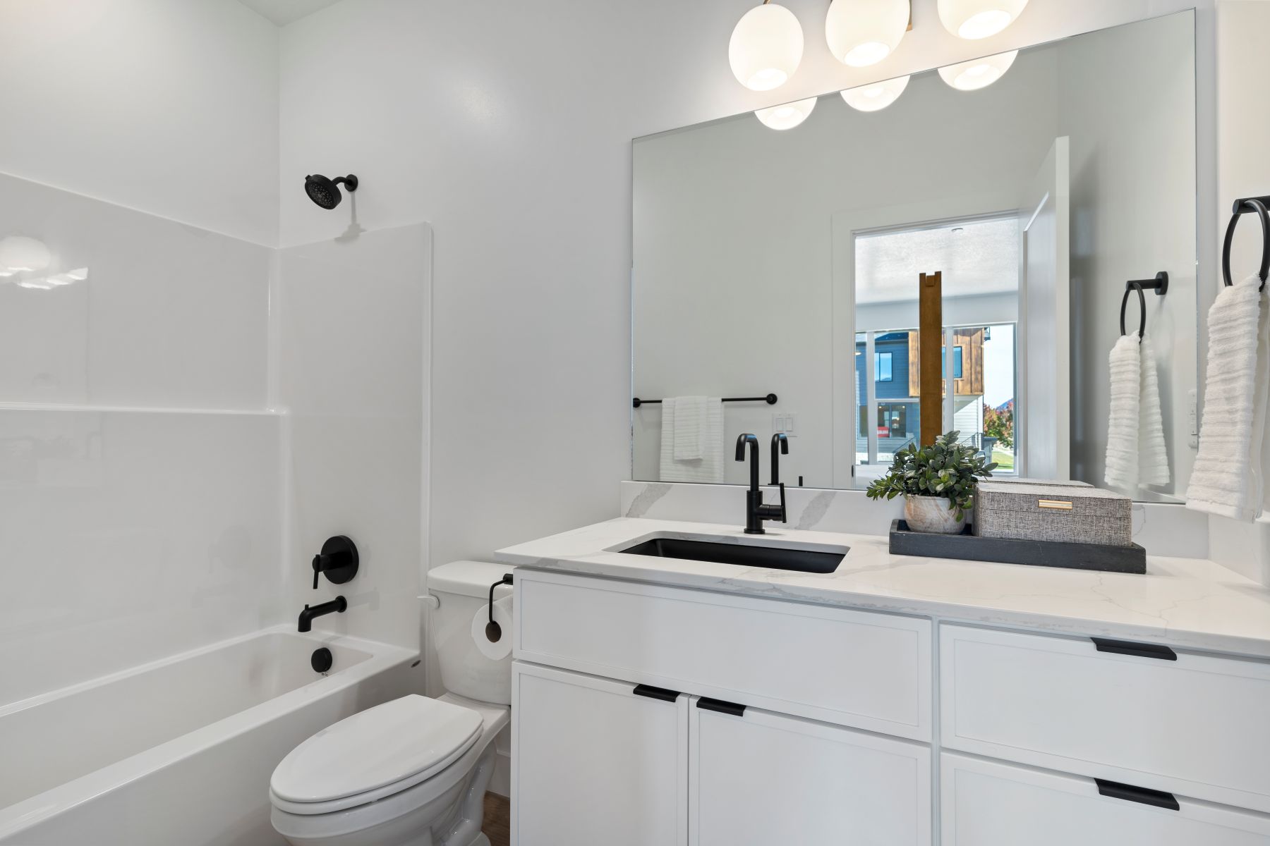 Photos are for reference only. You’ll see images with a kitchen and bathroom that is white and the other black. Please ask for exact colors.